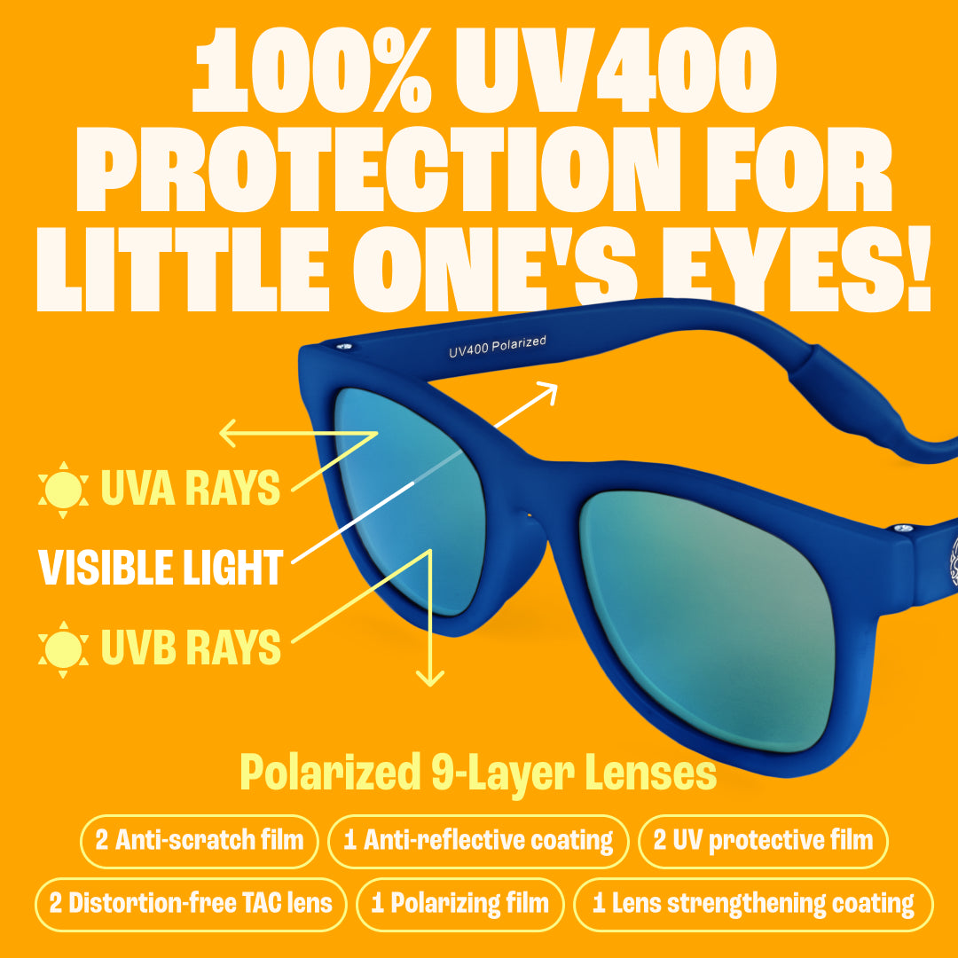 - 100% Protection; The ultra-protective UV400 lenses of our toddler sunglasses provide 100% UVA and UVB defense against harmful rays, Polarized for eliminating the amount of reflecting light that enters the eye