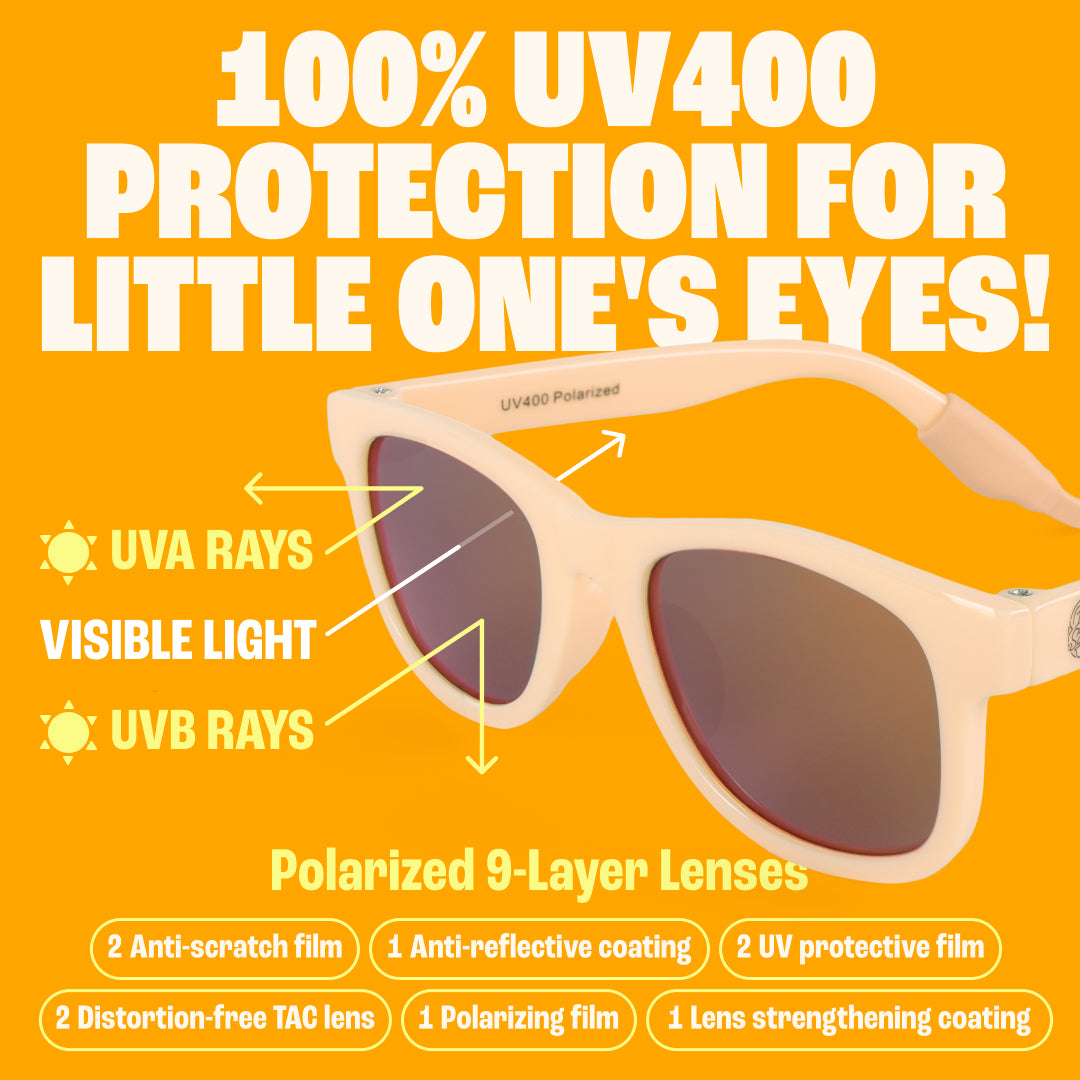 - 100% Protection; The ultra-protective UV400 lenses of our toddler sunglasses provide 100% UVA and UVB defense against harmful rays, Polarized for eliminating the amount of reflecting light that enters the eye