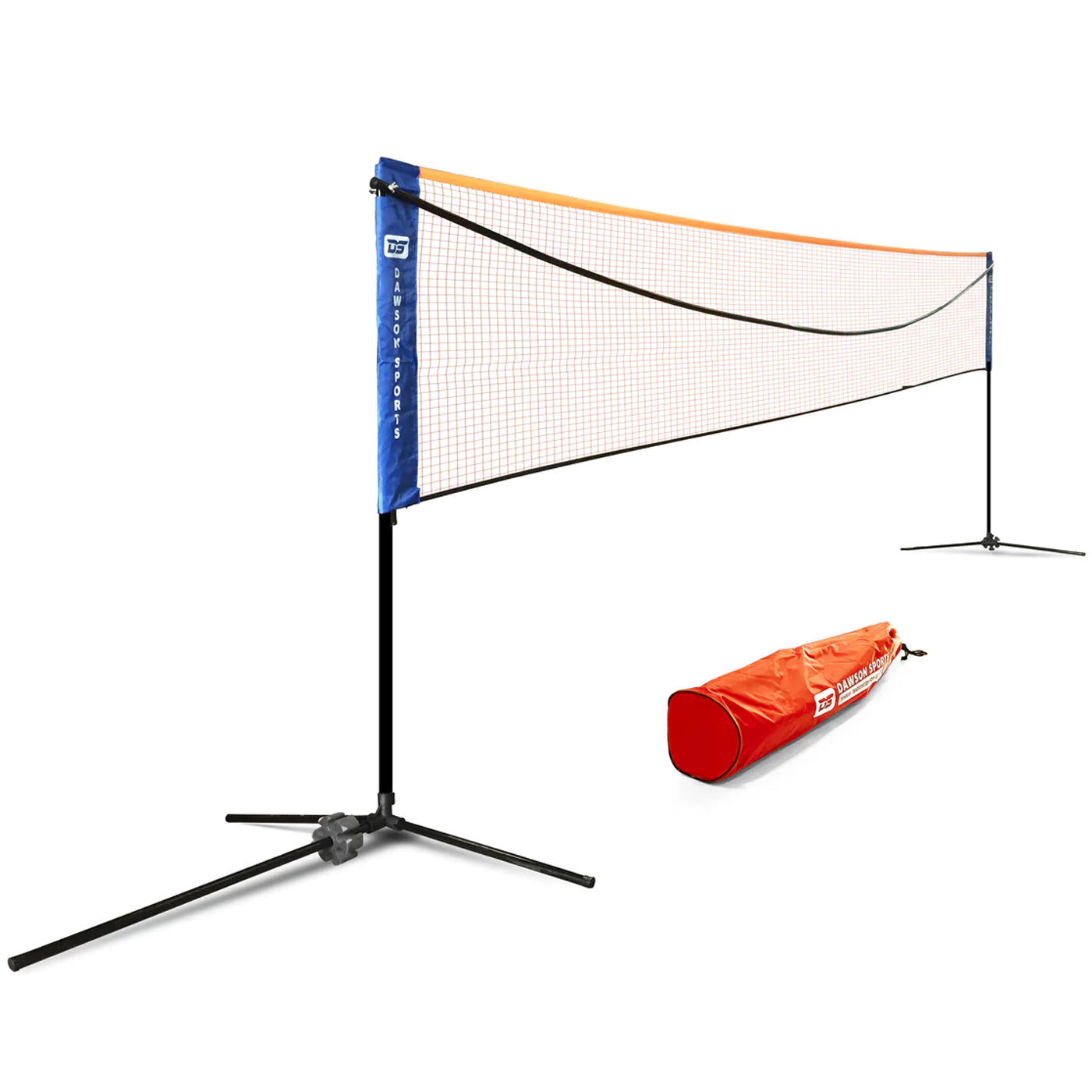 This is an excellent portable badminton net system. It includes net and poles frame stand. Simple and super fast assembly without tools required.